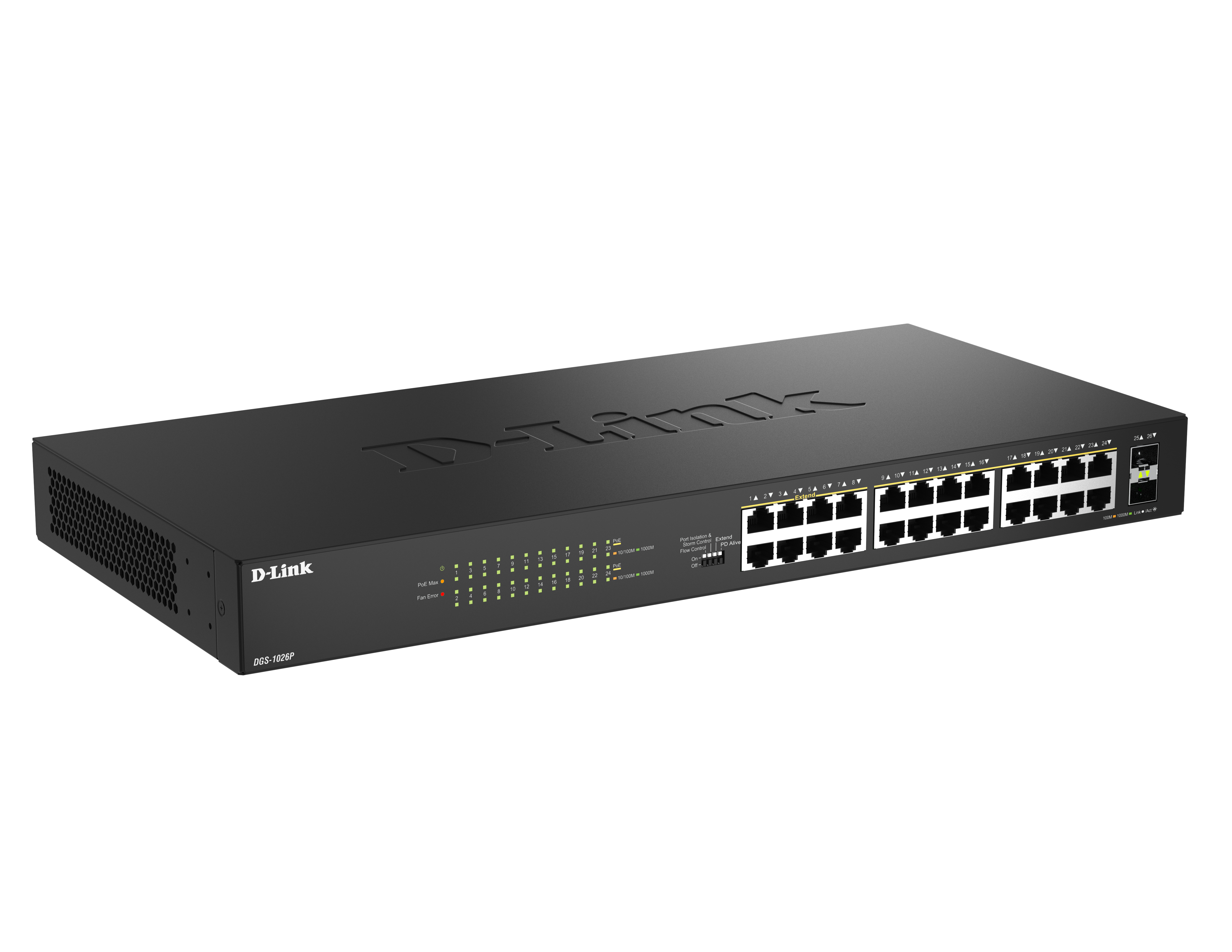 The D-Link DGS-1026P 26-Port Gigabit Congigurable PoE Switch offers an economical way for SOHO and Small-to-Medium Businesses (SMB) to take advantage of Gigabit Ethernet speeds, while reducing energy consumption and minimizing noise output.