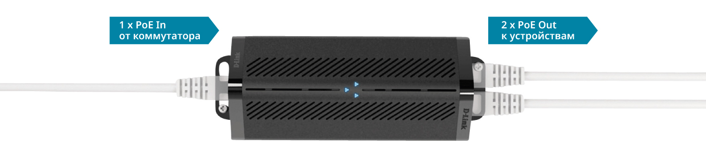 Быстрое подключение двух PoE-устройств по одному кабелю на расстоянии до 200 м