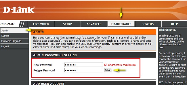 Вопрос: Как задать пароль администратора на камере DCS-2136L?