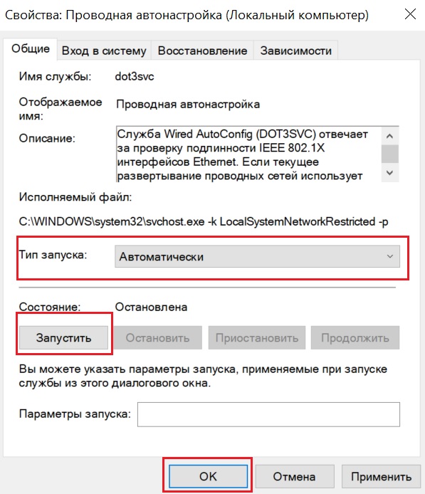 - В открывшемся окне выберите тип запуска Автоматически и нажмите кнопку Запустить. Когда служба запустится, нажмите кнопку ОК.