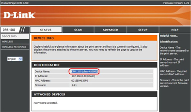 Перезайдите на интерфейс принт-сервера и проверьте информацию: