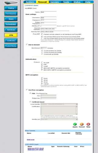 Remote net: адрес удаленной подсети, находящейся за PPTP сервером.