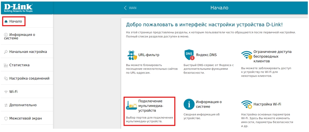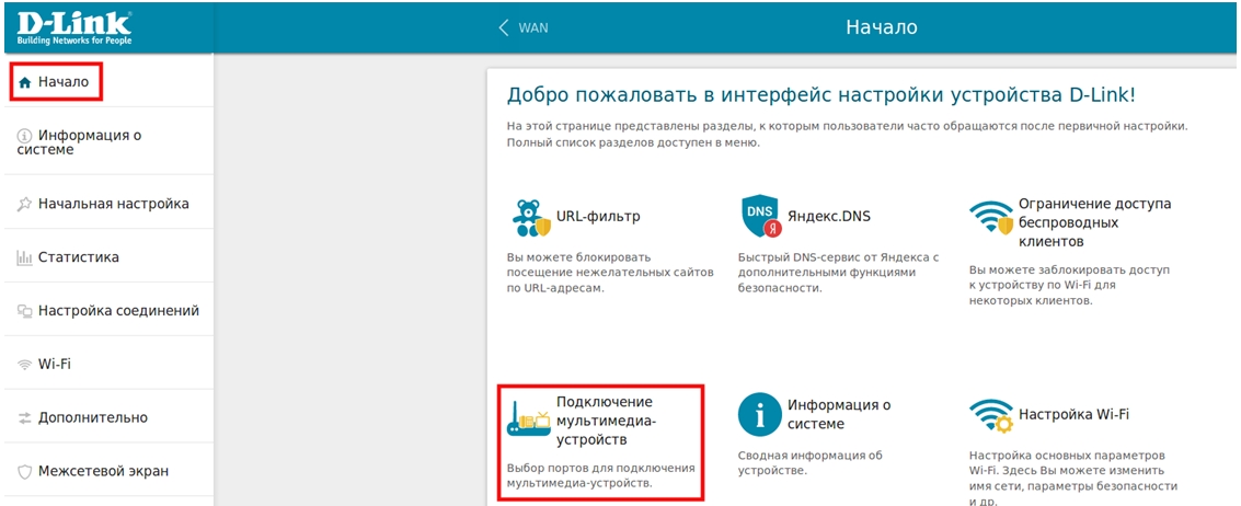 1. В разделе Начало выберите пункт Подключение мультимедиа-устройств.