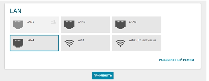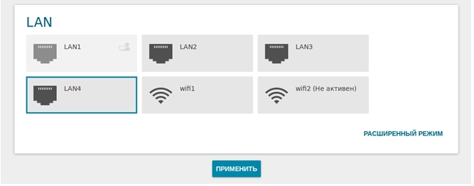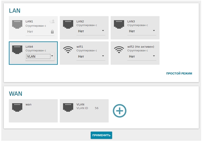 4. Сгруппируйте порт, к которому подключена ваша IPTV-приставка, с только что созданным подключением, как показано на рисунке. В нашем случае это порт LAN4, который мы сгруппировали с подключением VLAN. Нажмите кнопку Применить.