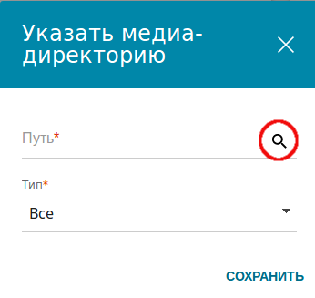 6. В поле Путь укажите папку с файлами, которая будет доступна для воспроизведения. Для поиска нажмите кнопку с изображением лупы.