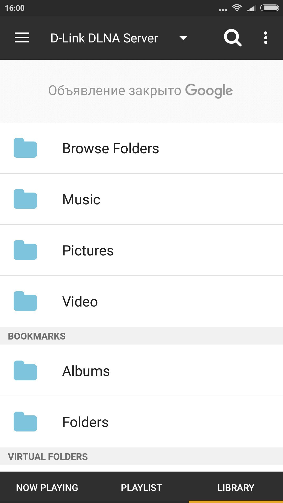 Пример использования DLNA-сервера на устройстве с ОС Android, подключенном к маршрутизатору по Wi-Fi
