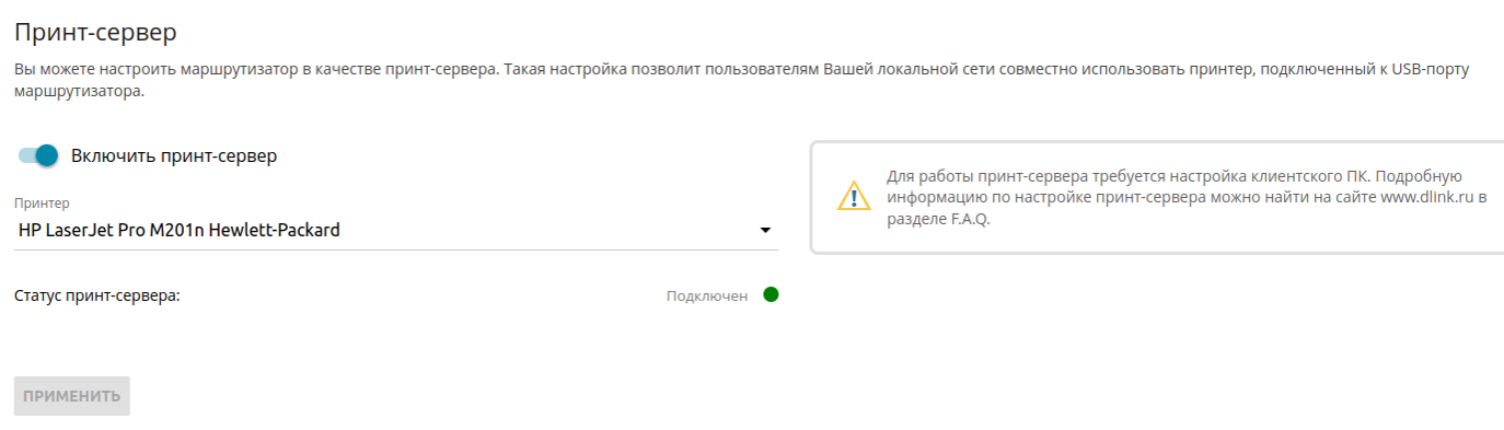 ВАЖНО! Убедитесь, что подключаемый USB-принтер поддерживает возможность работы в качестве сетевого принтера.
