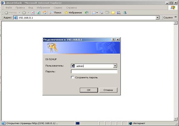 6. В адресной строке Internet Explorer набрать адрес http://192.168.0.1