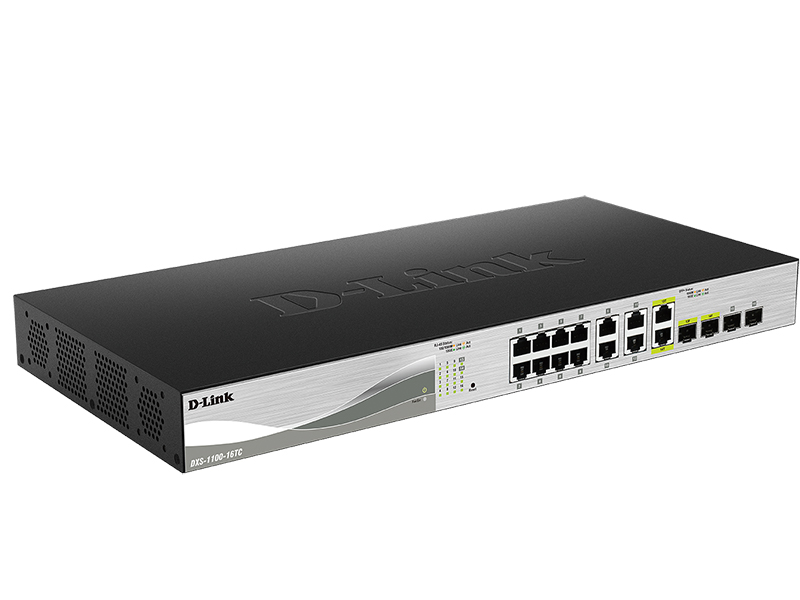 DXS-1100-16TC EasySmart Switch with 12 10GBase-T ports, 2 10GBase-X SFP+ ports and 2 combo 10G/Base-T/SFP+ ports