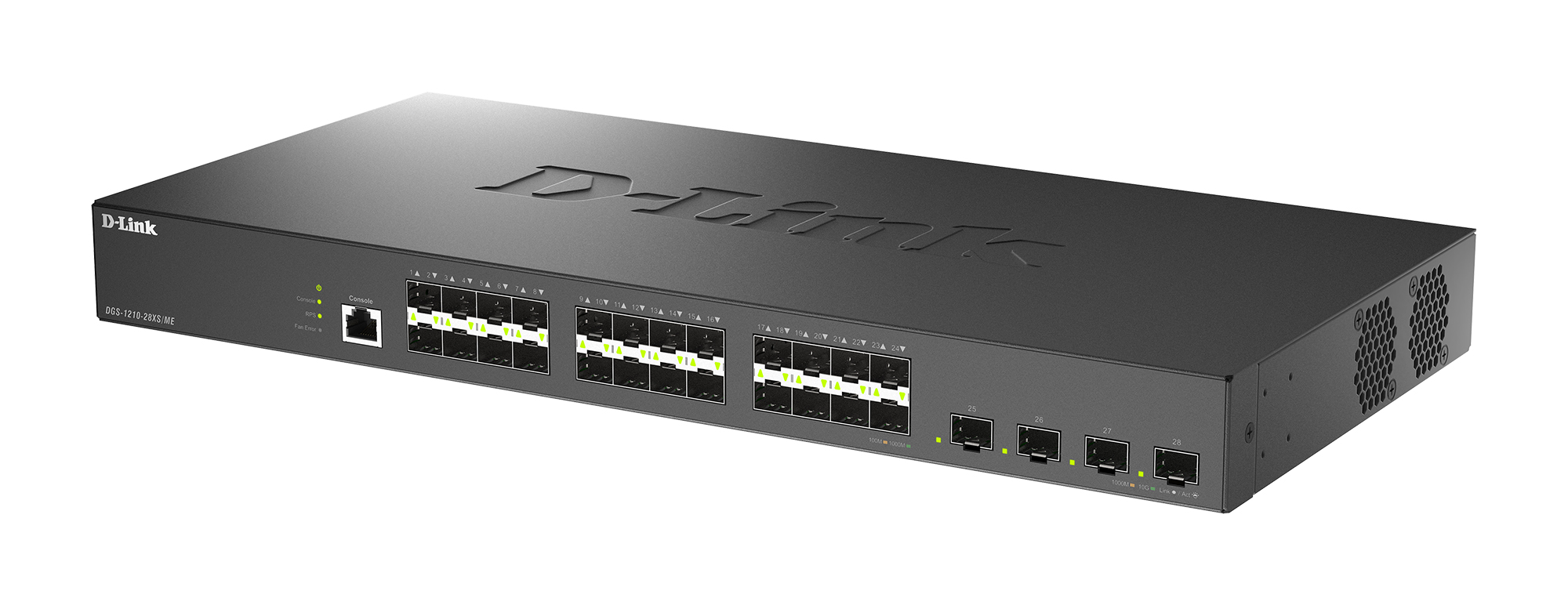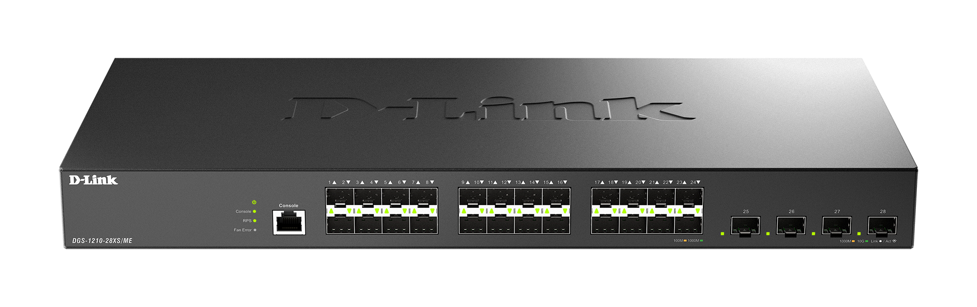 The D-Link DGS-1210-28XS/ME L2 Managed Switch is an ideal solution for Metro Ethernet applications. This switch is equipped with 24 100/1000Base-X ports for twisted pair connection, as well as 4 10GBase-X SFP+ ports used for high-speed backbone connection. 6 kV surge protection ensures resilience against unexpected electrical spikes, while a full suite of security and management features keeps network safe from internal and external threats. The DGS-1210-28XS/ME supports Auto Voice VLAN, ensuring higher priority for voice traffic.