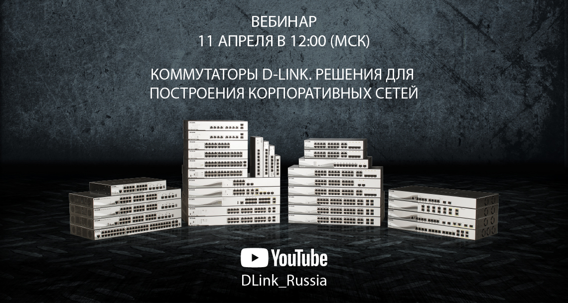 Москва, Россия, 5 апреля 2024 года. Компания D-Link приглашает на вебинар «Коммутаторы D-Link. Решения для построения корпоративных сетей», который состоится в четверг, 11 апреля 2024 года, в 12:00 мск на YouTube-канале D-Link.