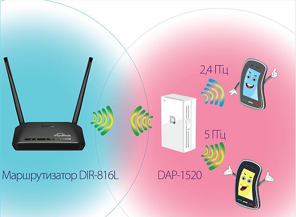 Количество «умной» техники в современном доме неуклонно растет. Для комфортной работы с многочисленными смартфонами, планшетами, ноутбуками, электронными книгами, телевизорами с функцией Smart TV необходим уверенный сигнал беспроводной сети во всем доме. Обычные беспроводные маршрутизаторы не всегда могут обеспечить достаточную зону покрытия и отсутствие «мертвых зон» в условиях сложной планировки современных квартир и коттеджей. Повторитель DAP-1520 позволит без лишних проводов и выполнения сложных сетевых настроек расширить зону беспроводного покрытия и обеспечить стабильный сигнал Wi-Fi там, где сигнал основного маршрутизатора недостаточен или вовсе отсутствует. DAP-1520 может работать одновременно в двух диапазонах частот 2,4 ГГц и 5 ГГц независимо от того, сколько диапазонов поддерживает основной маршрутизатор.