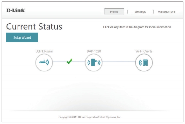 DAP-1520 выполнен в компактном корпусе размером 92 x 58 x 34 мм и подключается напрямую к электрической розетке, не нарушая интерьер дополнительным подведением кабеля. Установка устройства выполняется по принципу «подключи и работай» (Plug-and-Play), рассчитанному на неподготовленного пользователя: для расширения зоны покрытия достаточно просто нажать кнопку WPS на маршрутизаторе, а затем и на самом повторителе. Также настройку можно выполнить с помощью бесплатного мобильного приложения QRS Mobile для платформ iOS и Android или через удобный Web-интерфейс с интерактивной картой домашней сети.
