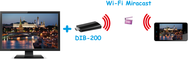 DIB-200 kasutab multimeedia signaali edastamiseks uusimat tehnoloogiat Miracast, mis võimaldab mobiilseadmetel temaga ühenduda ilma ruuterita.