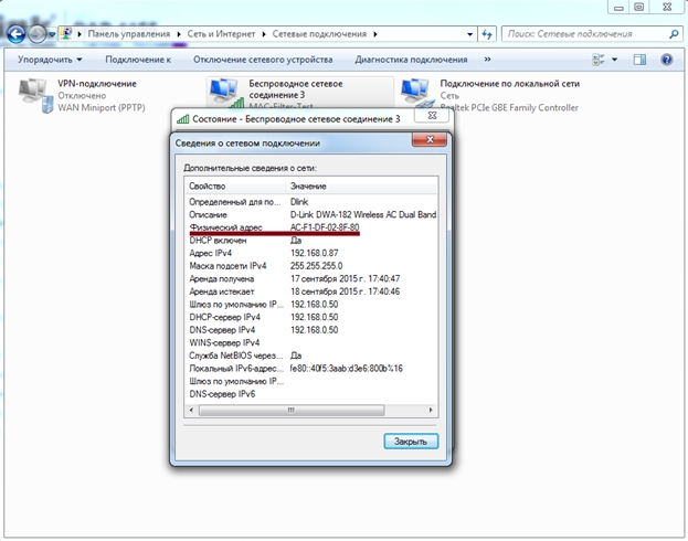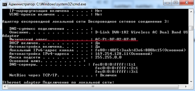 Именно этот адрес нужно будет вводить в МАС-фильтре роутера.