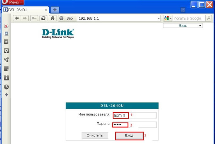 - Получите доступ к web-интерфейсу устройства. Для этого запустите Internet Explorer и наберите в адресной строке IP-адрес маршрутизатора: 192.168.1.1
