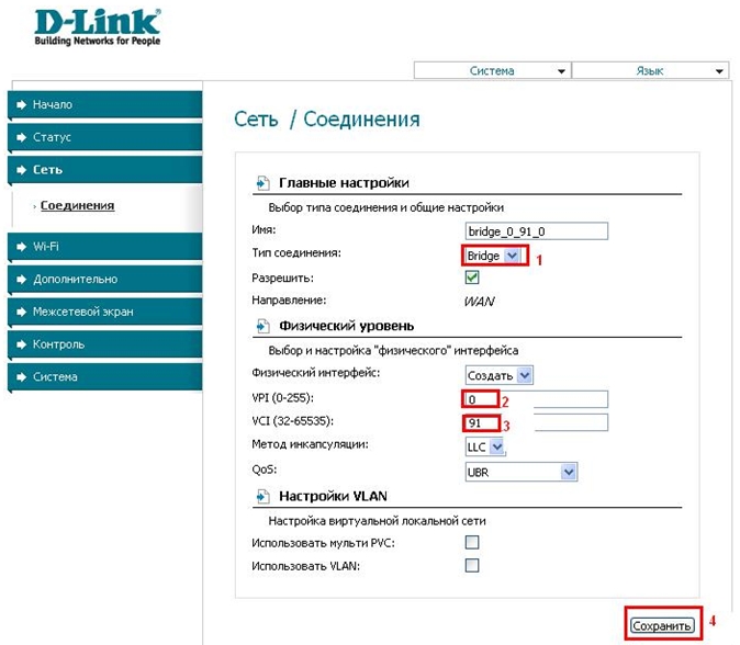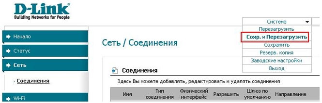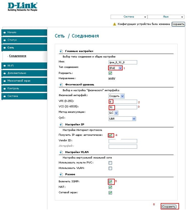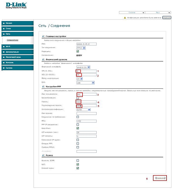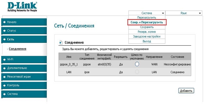 - Сохраните и перезагрузите модем.
