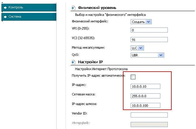 · укажите значение VCIв соответствии с настройками для Вашего провайдера. В данном примере задано значение 91;
