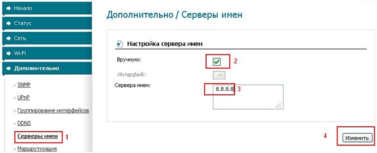 Ввод DNS- адресов вручную: