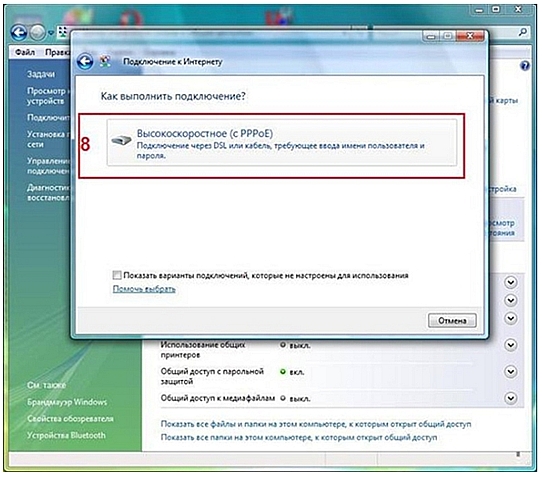 Настройка PPPoE клиента на рабочей станции под управлением ОС Windows Vista