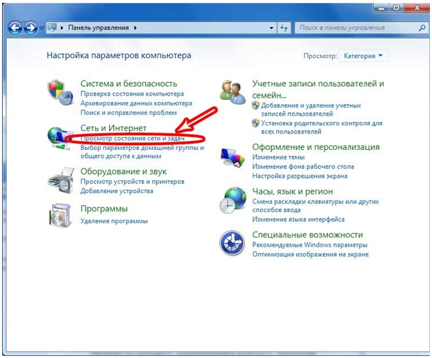 2. В разделе Сеть и Интернетнажмите на Просмотр состояния сети и задач.