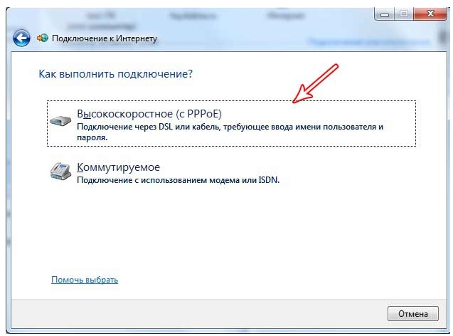 6. Выберите Высокоскоростное (с PPPoE)