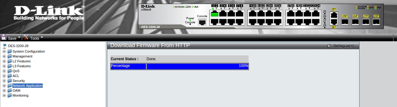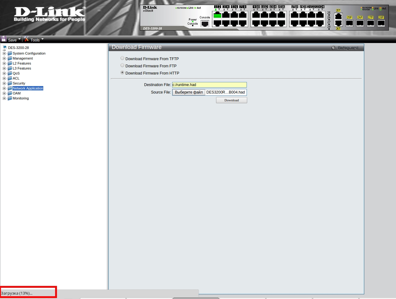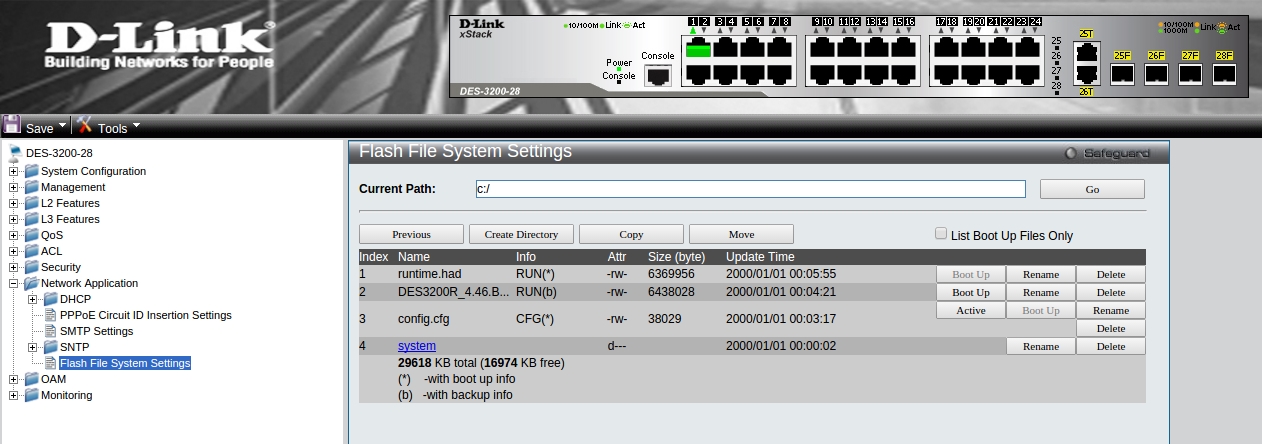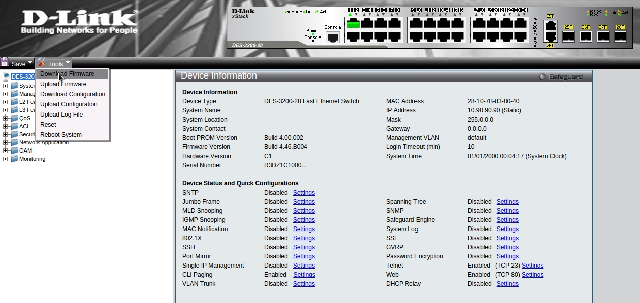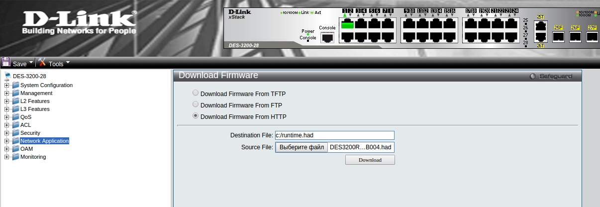 Рассмотрим обновление прошивки на примере коммутатора DES-3200-28 rev.C1.