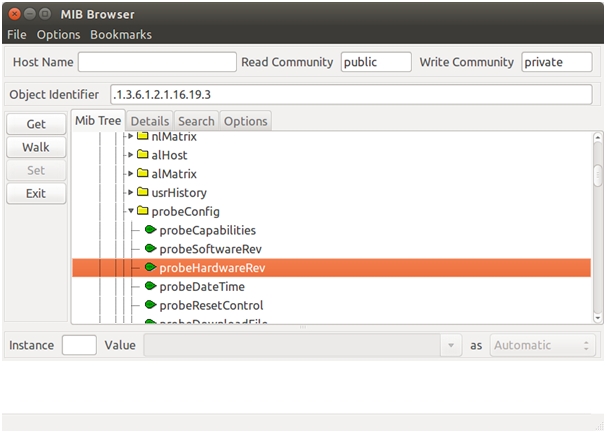 Для работы с MIB-файлами в Mbrowse под операционной системой Ubuntu требуется сначала скопировать файлы из распакованной папки с MIB файлами в каталог /root/.snmp/mibs. Далее запустить mbrowse. После этого появится окно программы показанное на рисунке 1.