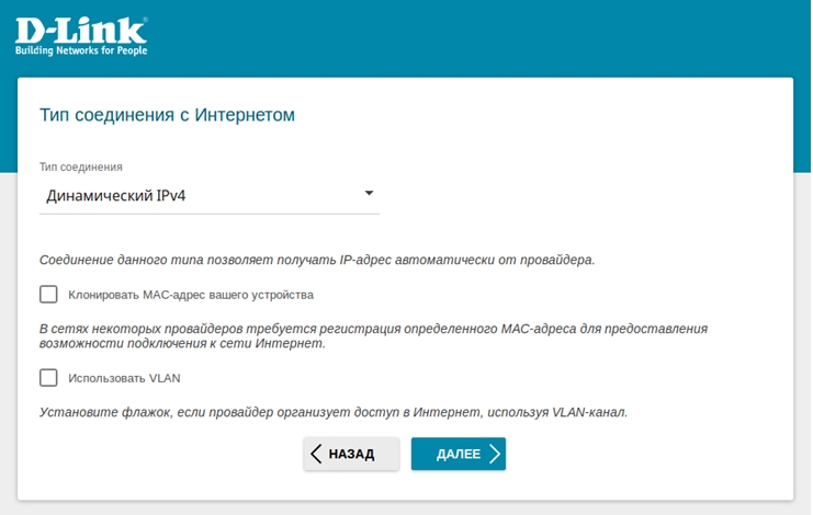 Если вы уже были подключены к Интернету, и провайдер закрепил за этим подключением определенный адрес сетевой карты Вашего компьютера, так называемый MAC-адрес, вы можете воспользоваться функцией подстановки. Для этого установите флажок в поле Клонировать MAC-адрес вашего устройства.