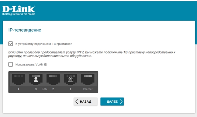 Если ваш провайдер предоставляет услуги телевидения, используя технологию VLAN, установите флажок в поле Использовать VLANID и пропишите VLAN ID.