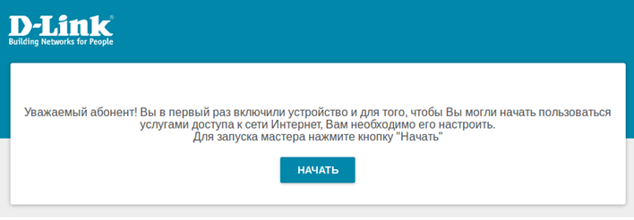 - Обратитесь к Web-интерфейсу маршрутизатора. Для этого в адресной строке браузера введите 192.168.0.1 и нажмите клавишу Enter. На открывшейся странице нажмите кнопку Начать.