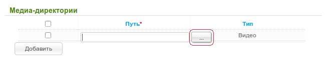 5. В поле Путь укажите папку с файлами, которая будет доступна для воспроизведения. Для этого нажмите кнопку справа от поля.