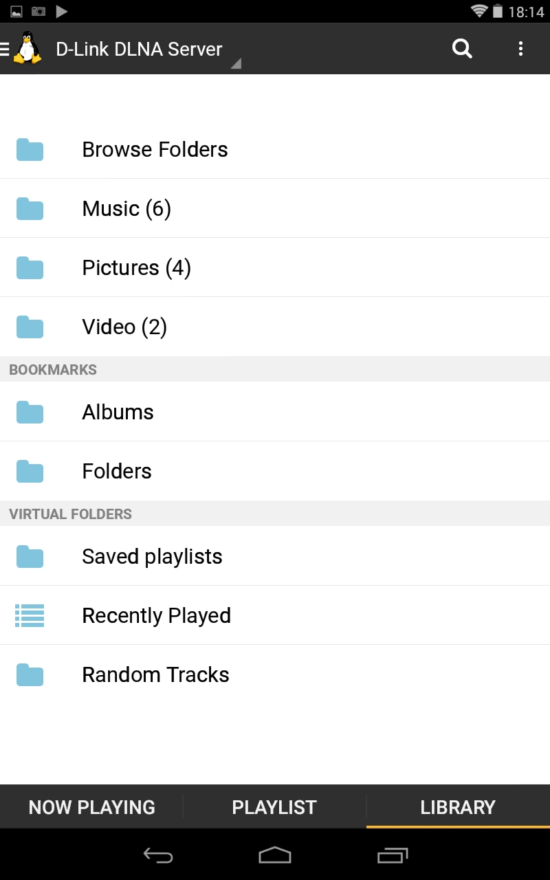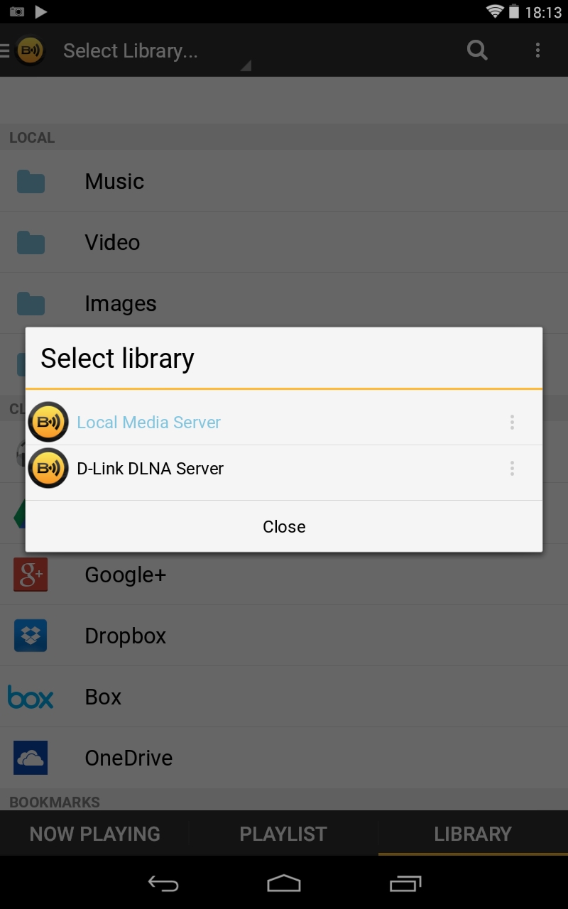 3. Нажмите Select Library. В открывшемся списке выберите имя заданного DLNA-сервера (D-Link DLNA Server).