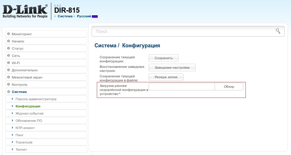 Важно: Пароль для входа на Web-интерфейс будет изменен на пароль, сохраненный в конфигурации!