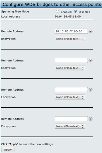 MAC-адрес указывается в поле Remote Address меню Manage → WDS