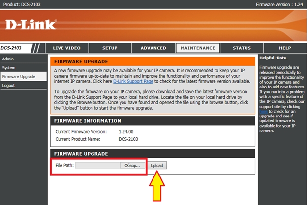 Шаг 5: Нажмите кнопку Обзор и в открывшемся окне выберите файл с прошивкой. Далее нажмите кнопку Upload (Загрузить).