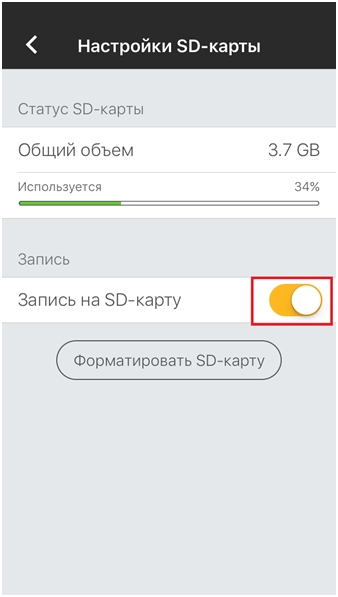 - Для активации записи на карту microSD при обнаружении движения установите переключатель Запись на SD-карту в правое положение.
