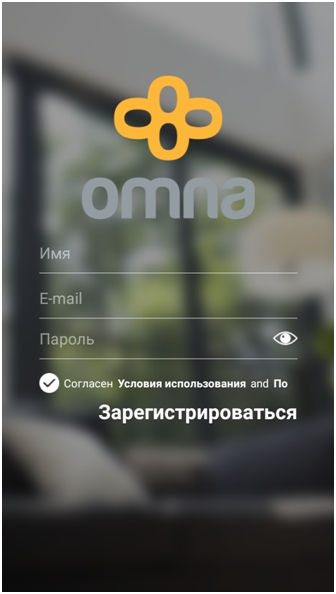- Далее откроется страница создания учетной записи Omna. Заполните необходимые данные (имя, адрес электронной почты, придумайте пароль, примите условия использования и политики конфиденциальности) и нажмите Зарегистрироваться.
