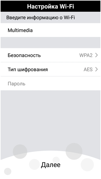 - Укажите пароль от Вашей домашней беспроводной сети, к которой будет подключена камера и нажмите Далее.