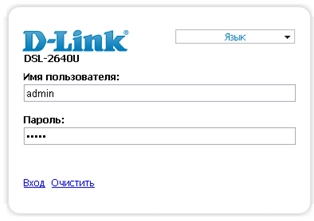 3. На открывшейся странице введите имя пользователя и пароль администратора для доступа к web-интерфейсу маршрутизатора (по умолчанию имя пользователя – admin, пароль – admin). Нажмите ссылку Вход.