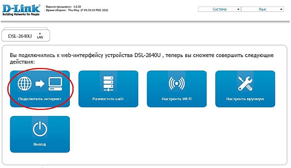 1.    Выбираем пункт меню мастера настройки «Подключить интернет»