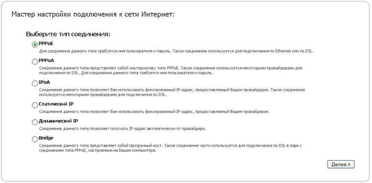 Вопрос: Настройка маршрутизаторов DSL-2xxxU в режимах PPPoE, IPoE (статический IP, динамический IP) и Bridge с помощью мастера быстрой настройки.