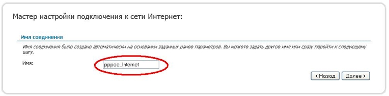 4. Далее мастер настройки предлагает задать имя настраиваемому соединению. Этот пункт необязателен для изменения. Нажмите «Далее».