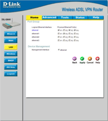 Рисунок 2. Web интерфейс DSL-G804V.