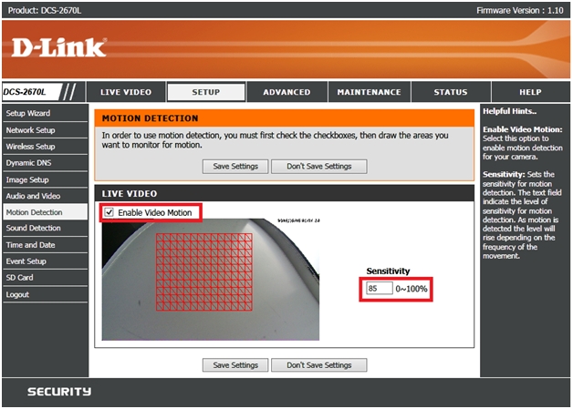 Шаг 5: Поставьте флажок в поле Enable Video Motion, чтобы включить программное обнаружение движения и выделите область обнаружения.