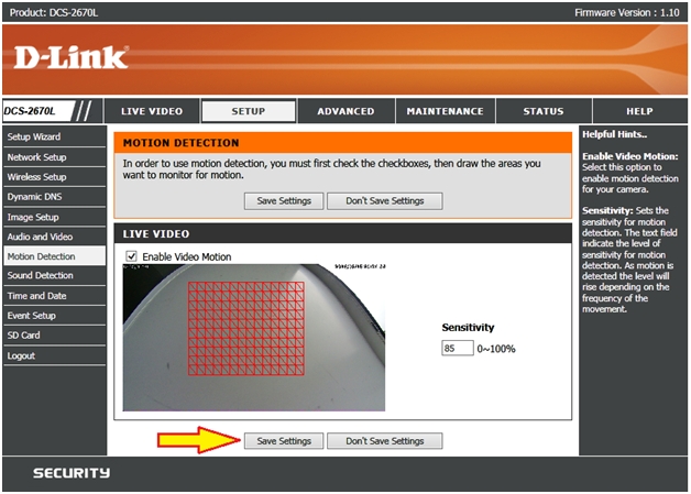 Шаг 4: Выберите Motion Detection (Обнаружение движения) слева в меню.