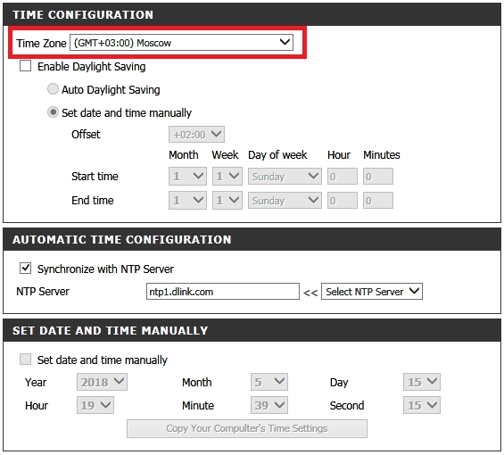 Примечание: обратите внимание, что при отключении питания устройства настройки даты и времени будут сброшены. Поэтому настоятельно рекомендуется использовать функцию синхронизации с NTP-сервером для автоматической настройки даты и времени.