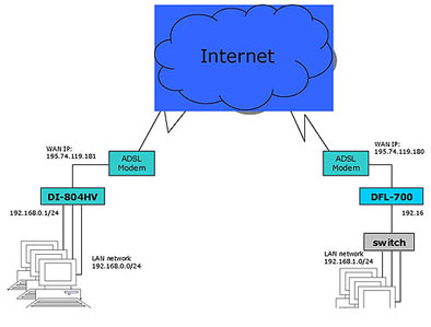 Со стороны DFL-700, инициируйте команду Ping на любой компьютер в LAN DI-804HV (например, 192.168.0.10). При этом должен создаться туннель, и Вы должны получить приблизительно такой ответ: