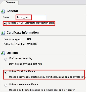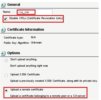- Отметьте Upload a certificate belonging to a remote peer or a CA server