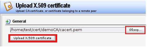 Укажите путь до cacert.pem сертификата и нажмите Upload X.509 certificate.